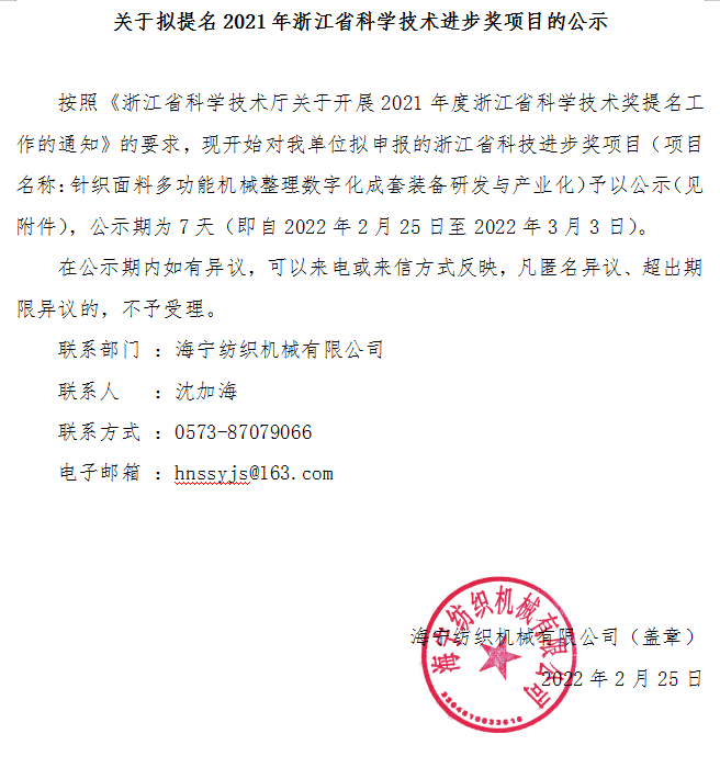 關(guān)于擬提名2021年浙江省科學(xué)技術(shù)進(jìn)步獎項(xiàng)目的公示
