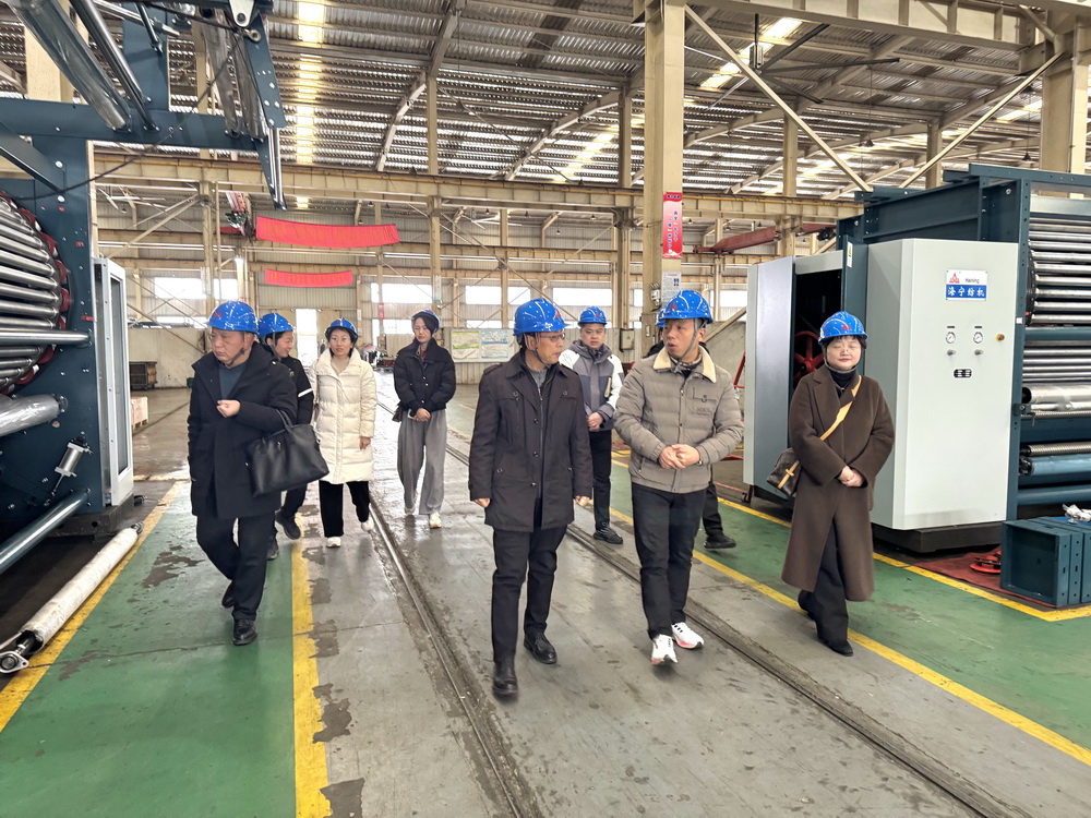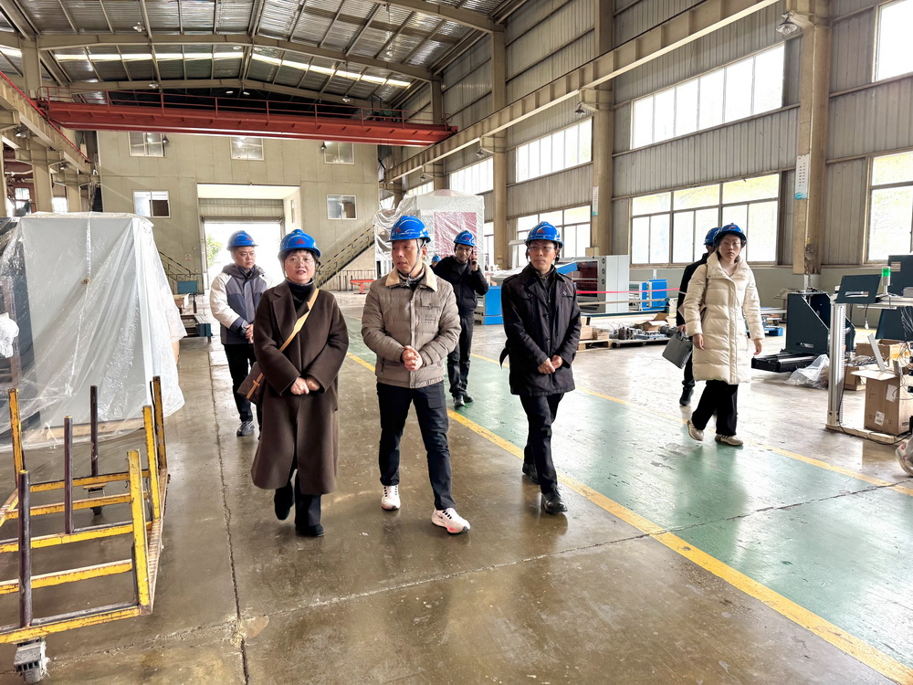 企業(yè)黨總支李曉波書記熱烈歡迎并陪同海寧市人社局黨組成員、副局長沈燕明、人才中心主任沈炳良與桂林航天工業(yè)學院王凱處長、張磊磊科長等一行對紡機車間進行了參觀。
